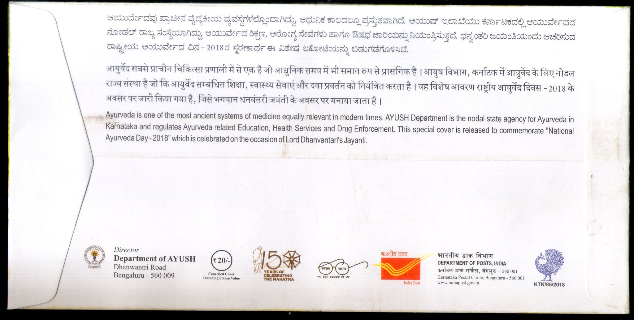 India 2018 National Ayurveda Day Health Medicine Special Cover # 7218