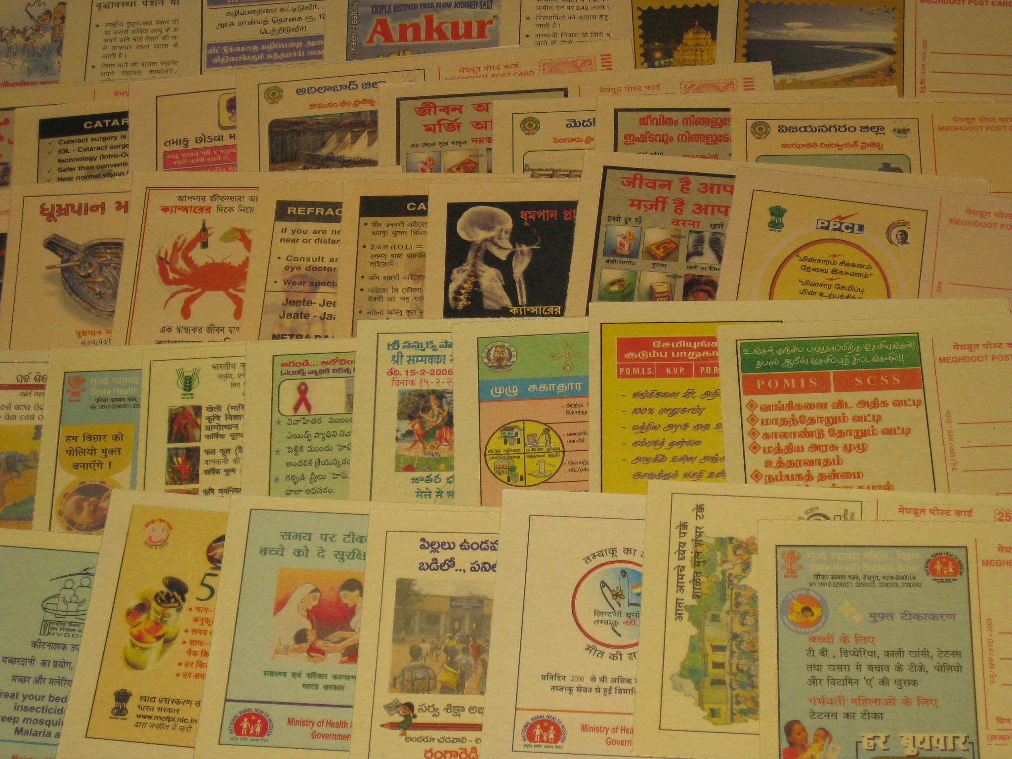 India 475 diff Meghdoot Post Cards on Gandhi Aids Malaria Cancer Health Banking Aids All Mint