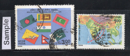India 1985 SAARC Summit Flag Map Phila-1020-21 Used Stamp Set # 632