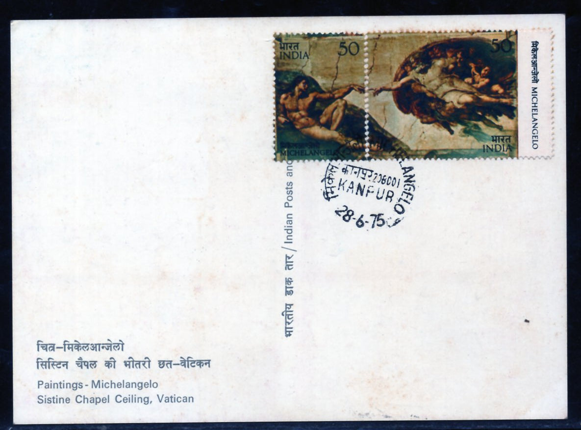 India 1975 Michelangelo Paintings 2v Max Card # 7612