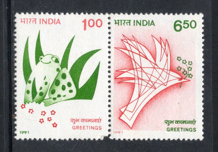 India 1991 Greeting Phila-1301 Se-tenant Pair MNH # 1581