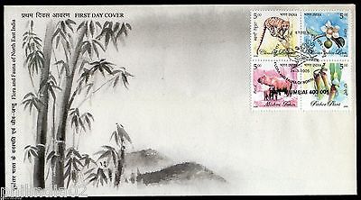 India 2005 Fauna-Flora of North East Animal Flower Phila-2117 Se-tenant FDC