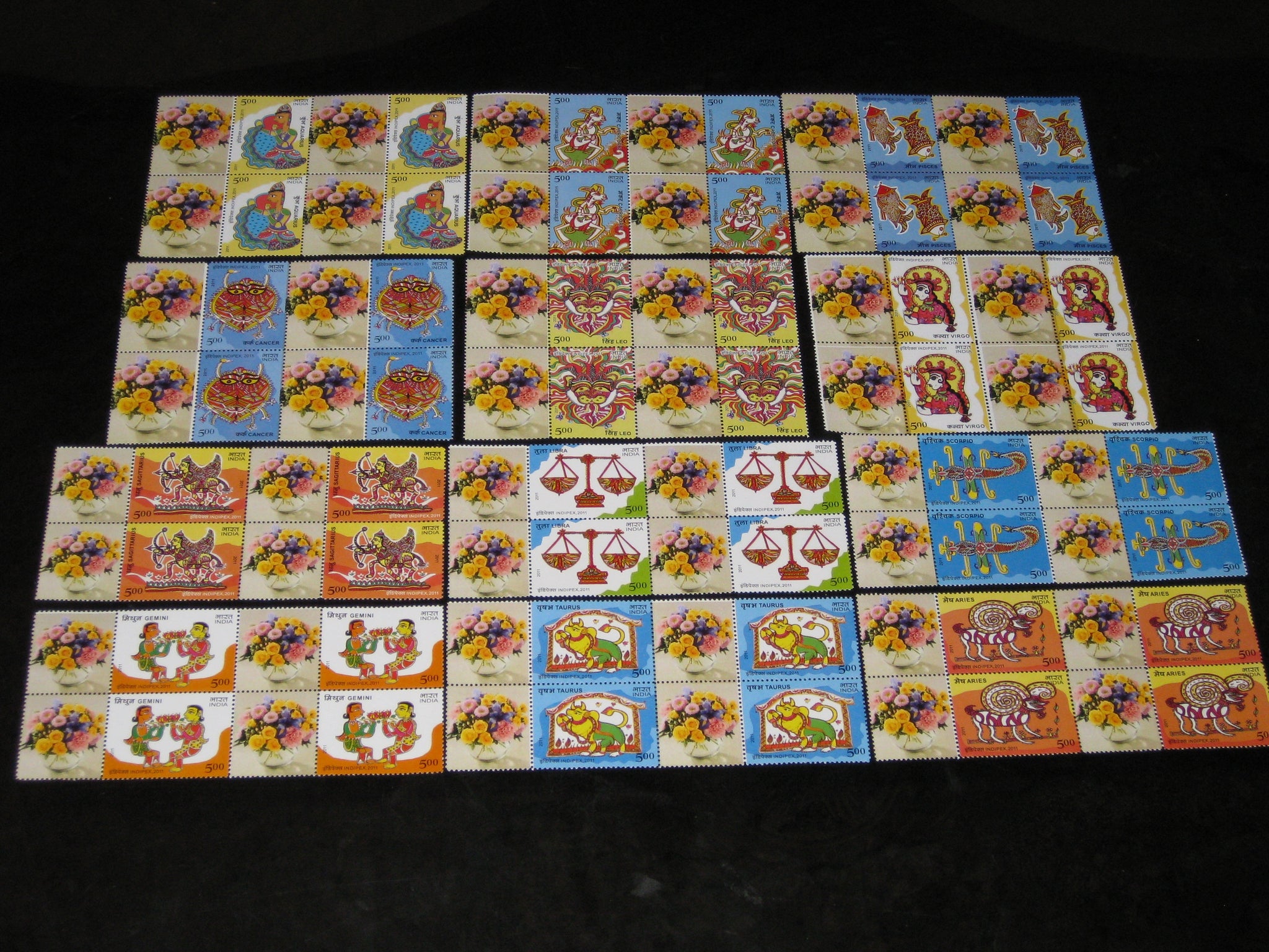 India 2011 INDIPEX Astrological Sign Complete Set My Stamp Customized BLK/4 MNH