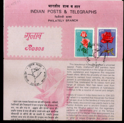 India 1984 Roses Flowers Phila-988-89 Cancelled Folder