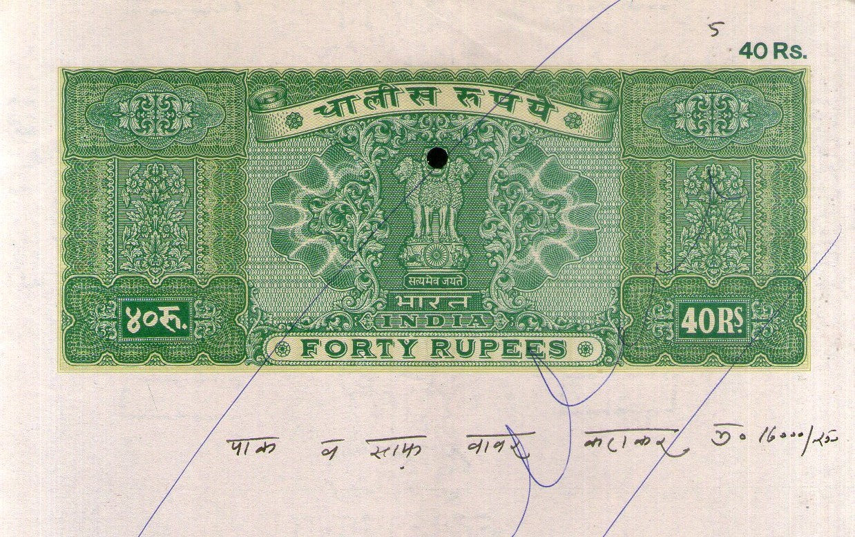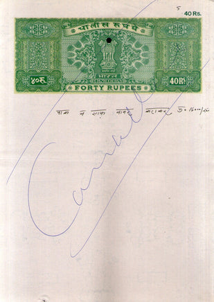 India Fiscal Rs. 40 Ashokan Stamp Paper Court Fee Revenue WMK-17 Good Used # 104