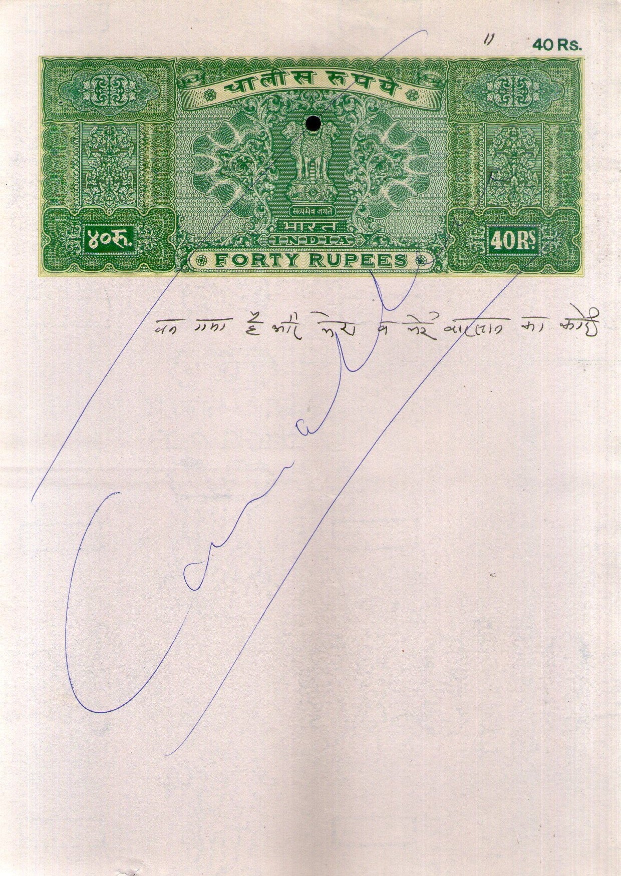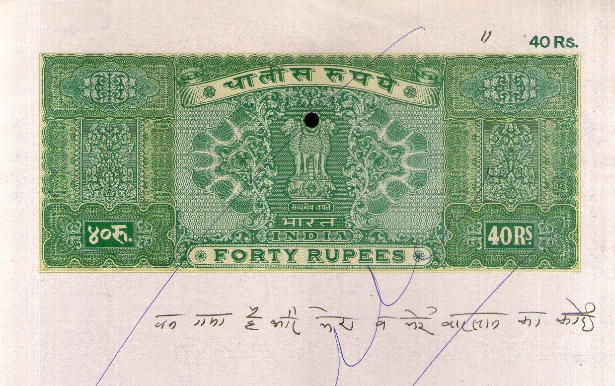 India Fiscal Rs. 40 Ashokan Stamp Paper Court Fee Revenue WMK-17 Good Used # 104