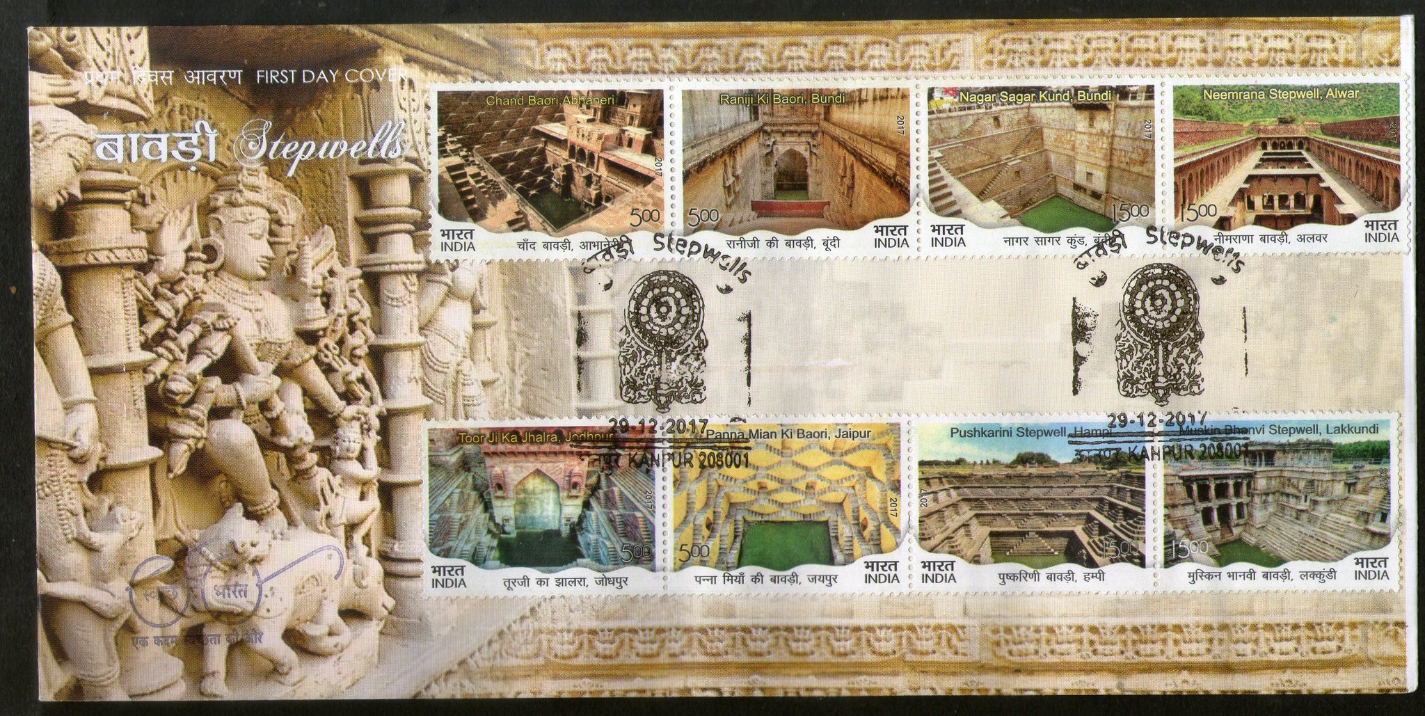 India 2017 Step Wells Ancient Baori Architecture 16v Se-Tenant FDCs
