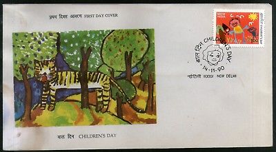 India 1990 Children's Day Painting Art Tiger Animal Wildlife FDC
