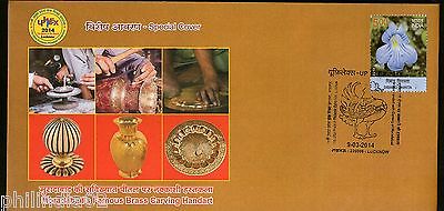India 2014 Famous Brass Carving Hand Art Moradabad Pottary Peacock Cover # 7470