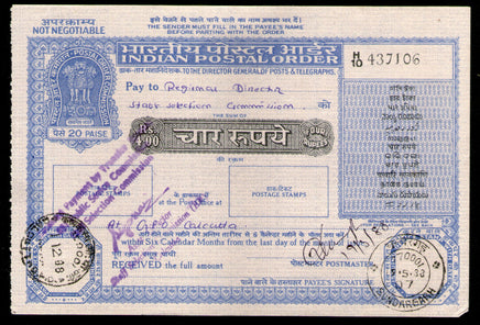 India Rs.4 Postal Order Good Condition Used RARE # 7707