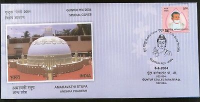India 2004 Amravathi Stupa Buddha Buddhism Guntur Pex Exhib. Special Cover # 6824