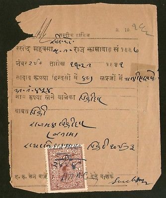 India Fiscal Jhalawar State 1An King T36 KM 365 Revenue Stamp on Document # 7876
