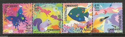 India 2003 Greetings Butterfly Bird Fish Phila-2005 Se-tenant MNH