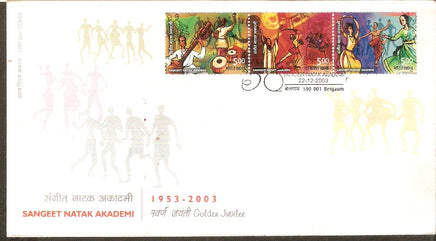 India 2003 Sangeet Natak Akademi Music Setenant 3v Phila-2030a FDC