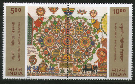 India 2000 Madhubani Mithila Paintings Phila-1792 Se-tenant MNH