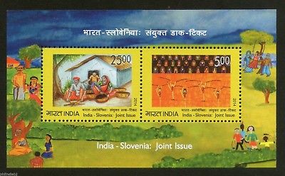 India 2014 Slovenia Joint Issue Children's Painting Art M/s MNH