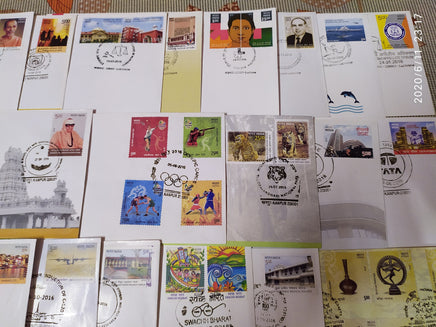 India 2016 Year Pack of 36 FDCs on Olympic Games Birds Yogasan Joints Issue Wildlife Orchids Metal Craft