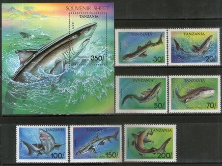 Tanzania 1993 Sharks Marinelife Fish 7V + M/s MNH # 7723