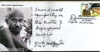 India 2012 Mahatma Gandhi Exhibition Jammu Massage Special Cover # 6761