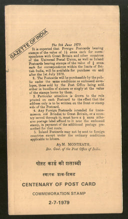 India 1979 Centenary of Post Cards in India Phila-789 Blank Folder