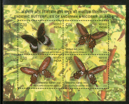 India 2008 Endemic Butterflies Moth Insect Phila 2340 M/s MNH