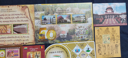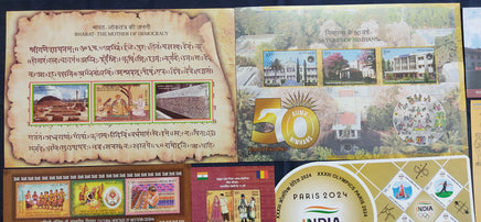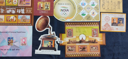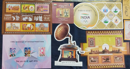 India 2024 Year pack of 11 M/s on Ram Janmbhoomi Temple Olympic UPU Joints Issue Music Cinema Odd Shaped MNH