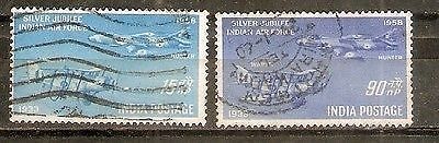 India 1958 Silver Jubilee of Indian Air Force Phila-332-33 Used Set