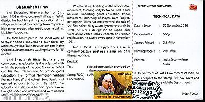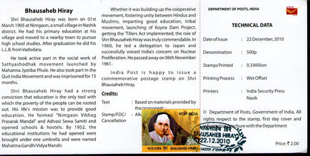 India 2010 Bhausaheb Hiray Phila-2666 Cancelled Folder