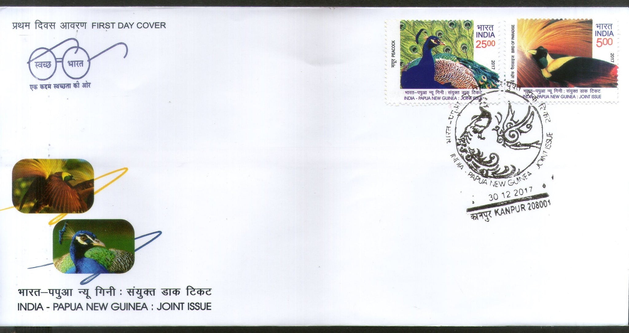 India 2017 Papua New Guinea Joints Issue Bird of Paradise Peacock Fauna 2v FDC