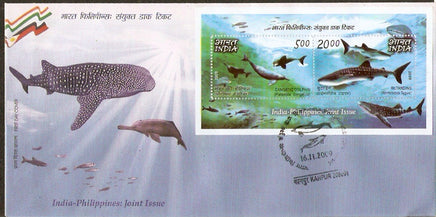 India 2009 Philippines Joints Issue Whale Dolphin Marine Life M/s on FDC