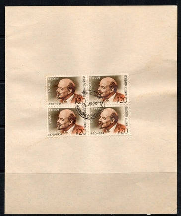 India 1970 V.I. Lenin USSR Leader Phila-509 BLK/4 FD Cancelled on Plain Paper