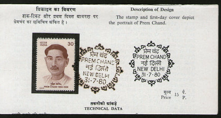 India 1980 Munshi Premchand Phila-824 Cancelled Folder