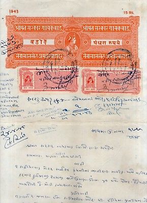 India Fiscal Baroda State 15 Rs Stamp Paper T50 KM520 Revenue Court Fee # 293-11