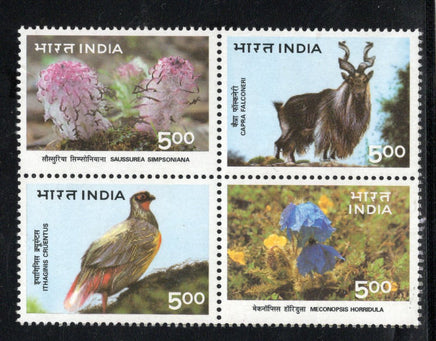 India 1996 Himalayan Ecology Bird Animals Flower Setenant Phila-1491a MNH
