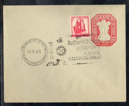 India 1968 15np Ashokan C.S.I.R. Silver Jubilee Special Cancelled Postal Stationery Envelope # 5418