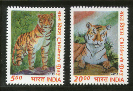 India 2011 Children's Day Tiger Animals Wild Life Phila-2726-27 2v Set MNH