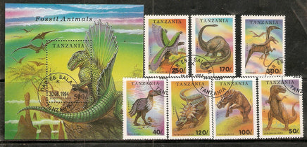Tanzania 1994 Dinosaurs Pre Historic Animal Wildlife Sc 1217-24 7v+M/s Cancelled