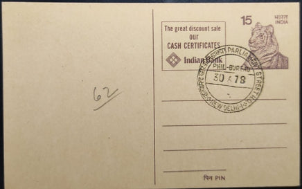 India 1978 15p Indian Bank Advertisement Post Card # PCA62