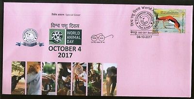 India 2017 World Animals Day Wildlife Horse Dog Elephant Special Cover # 6961