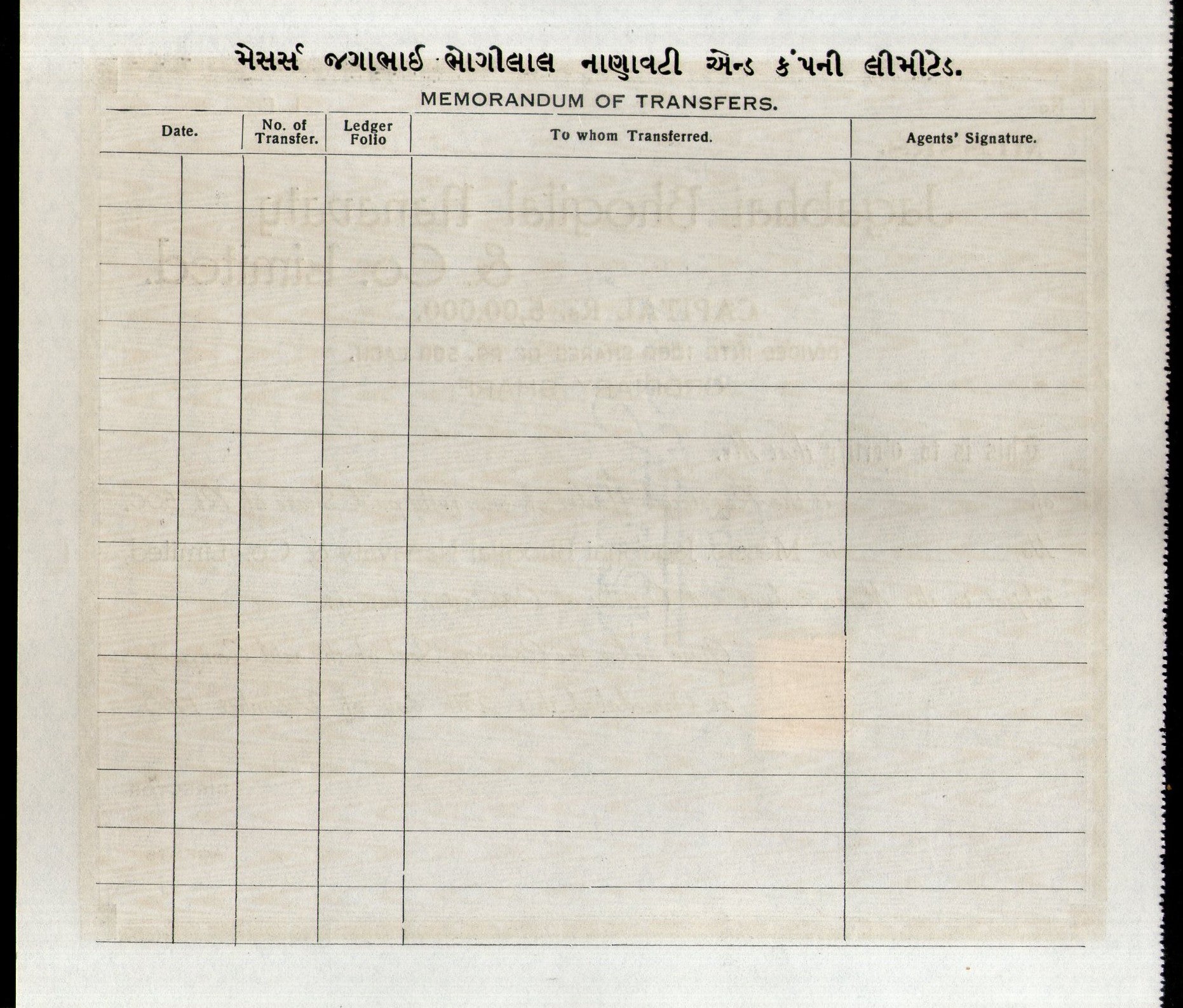 India Jagabhai Bhogilal Nanavaty & co. Share Certificate with Revenue Stamp # A1
