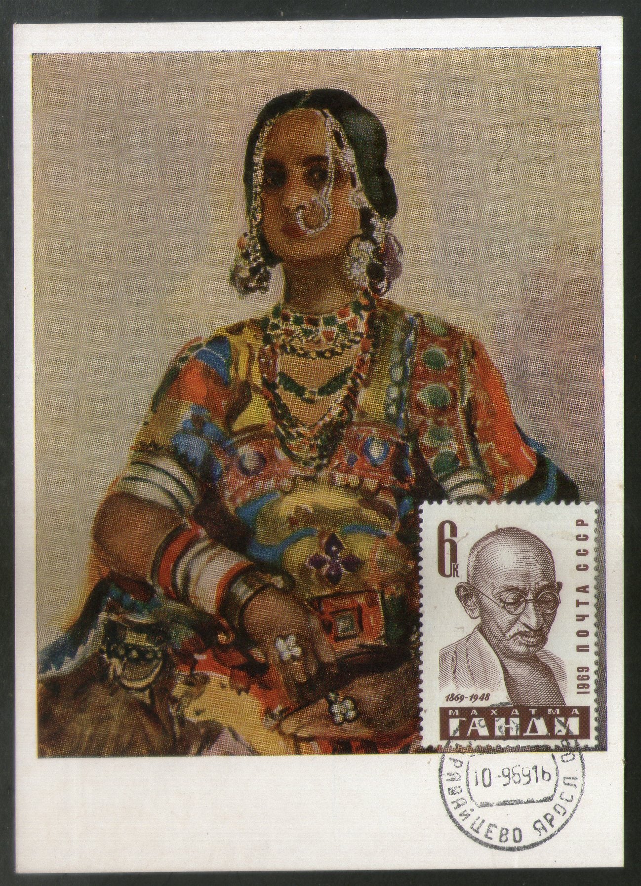 USSR 1969 Russia Mahatma Gandhi of India Max Card FD Cancelled RARE # 7919