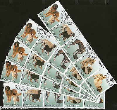 Turkmenistan 1998 Dogs Domestic Animals Wild Life Fauna Setenant Cancelledx5 # 63