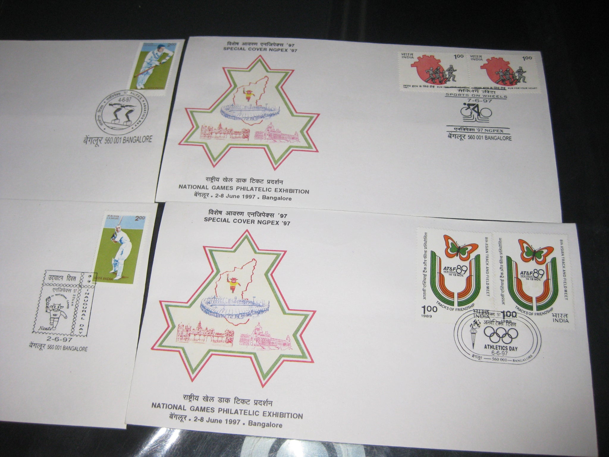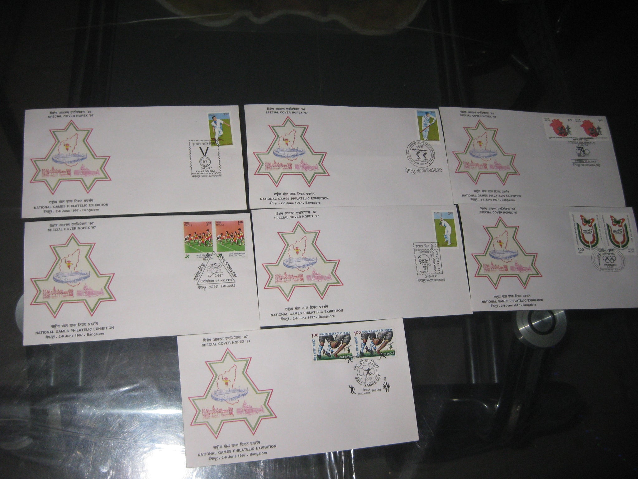 India 1997 Athletics Sports Wheel Ball Games NGPEX Banglore 7 diff. Special Covers # 18066