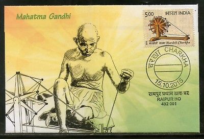 India 2015 Mahatma Gandhi Bardoli Charkha Spinning Wheel Max Card # 16135