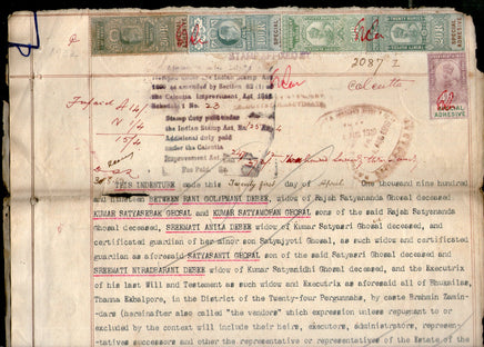 India Fiscal KEd Rs.200+100, KGV Rs.50+20+8As Special Adhesive Stamp on Document
