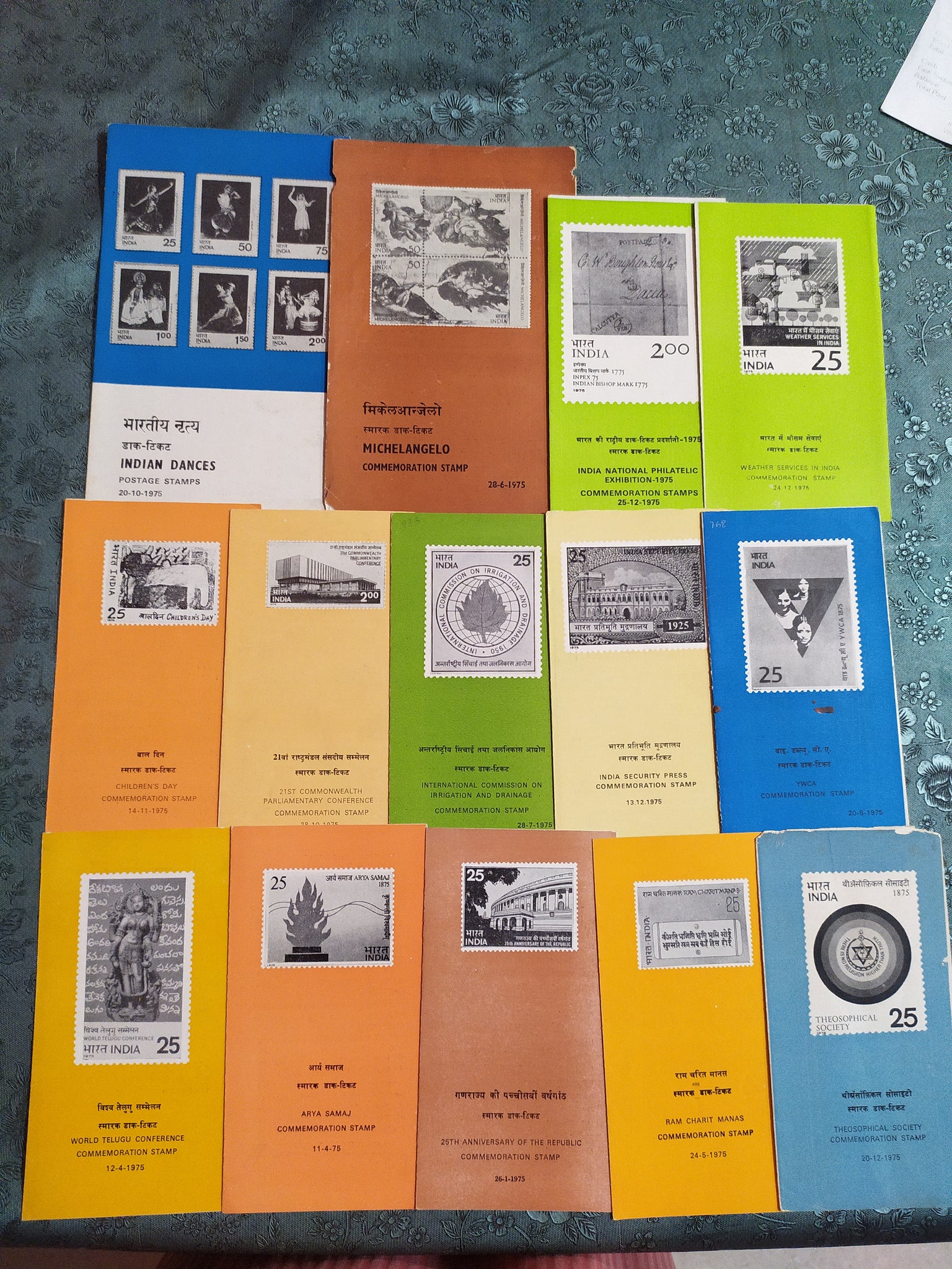 India 1975 14 Diff Blank Folders Michelangelo Dance Children's Day YWCA Famous People # 36