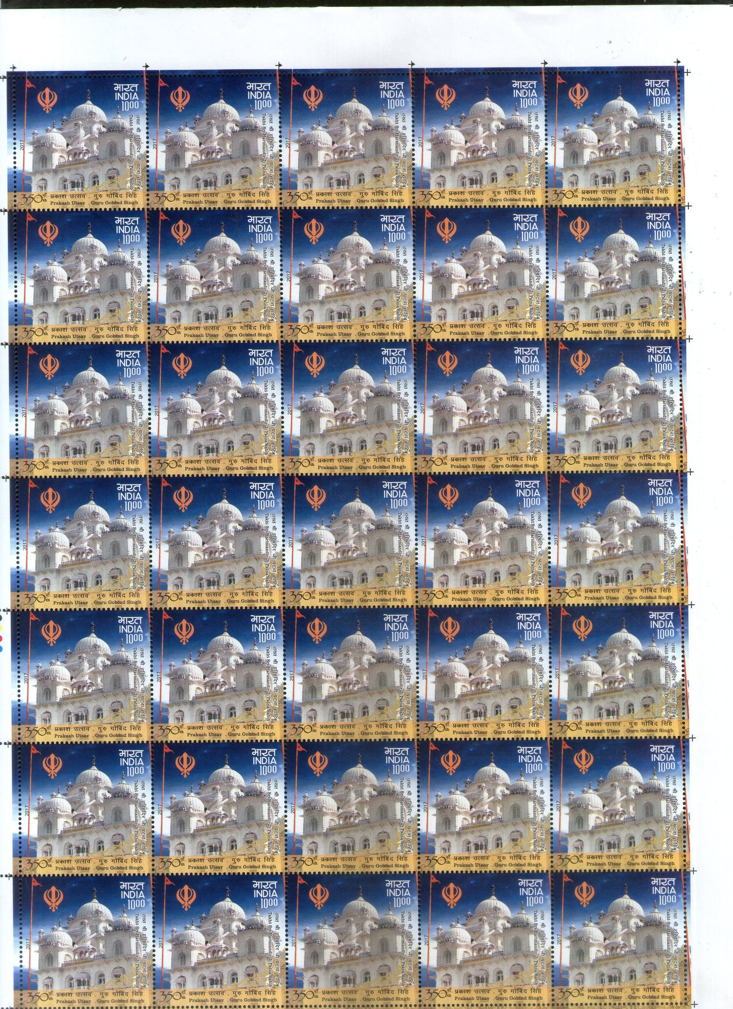 India 2017 Guru Gobind Singh 350th Prakash Utsav Takht Patna Sahib Sikhism Full Sheet of 35 Stamps MNH