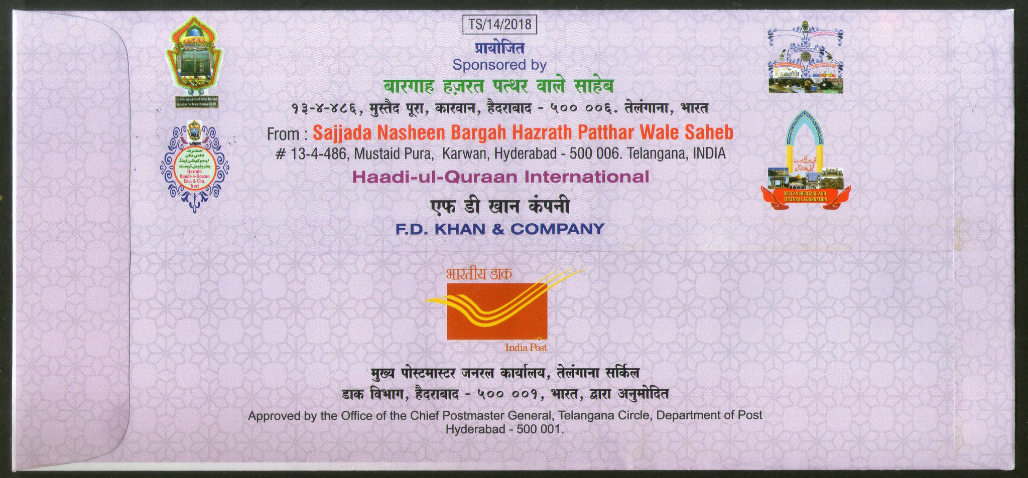 India 2018 Sajjada Nasheen Festival Islam Mosque Tomb Special Cover # 18518