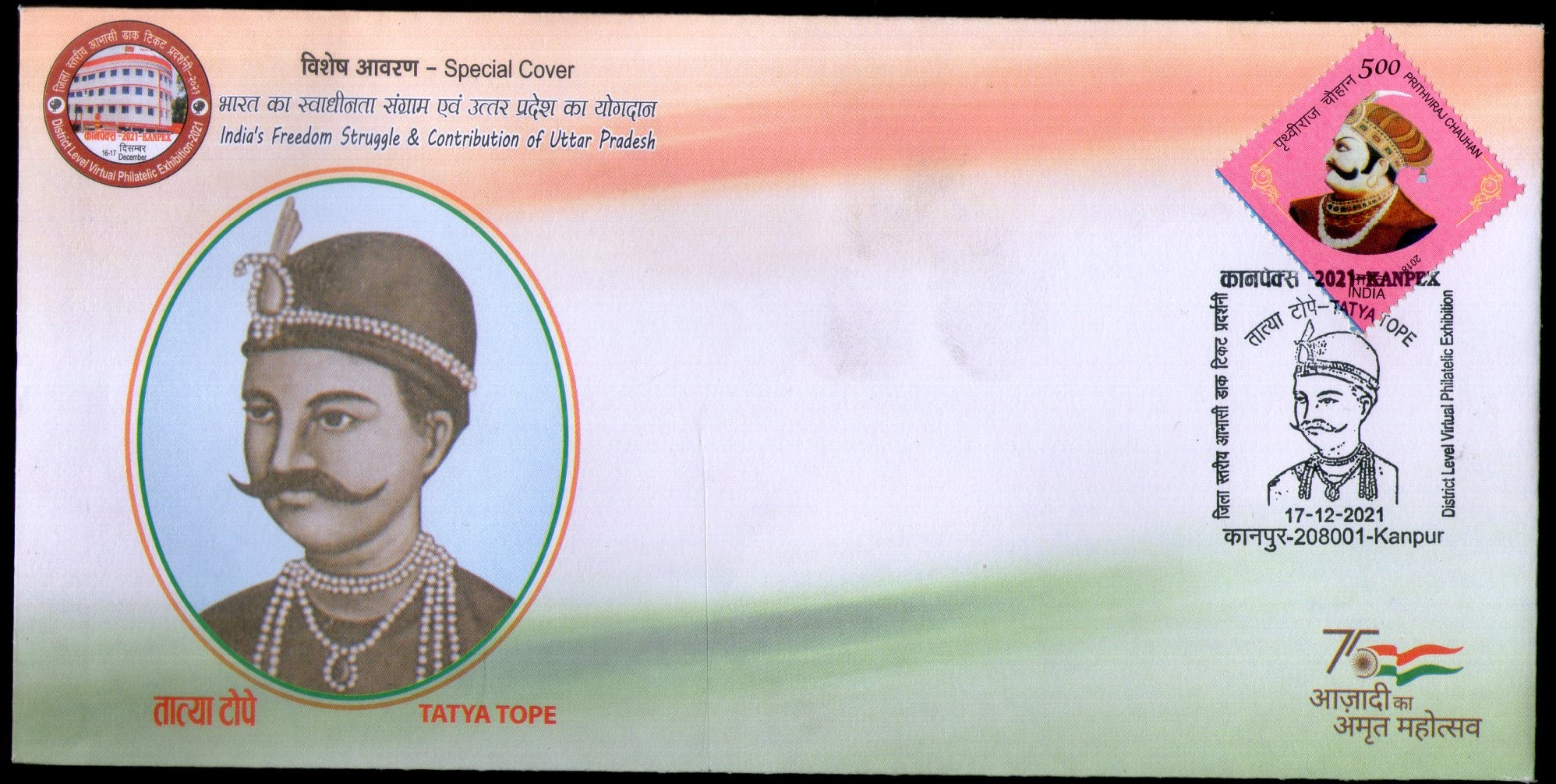 India 2021 KANPEX Tatya Tope Freedom Struggler Special Cover # 6950