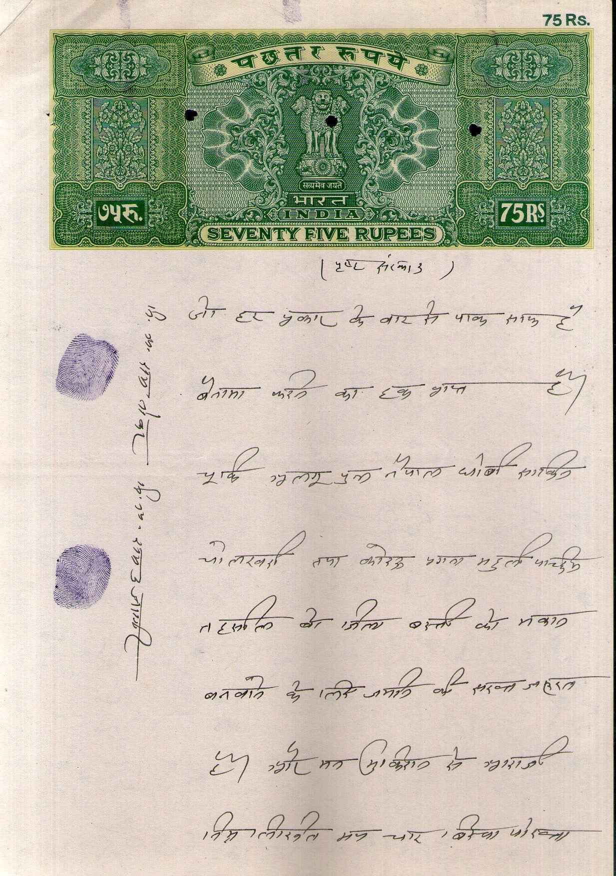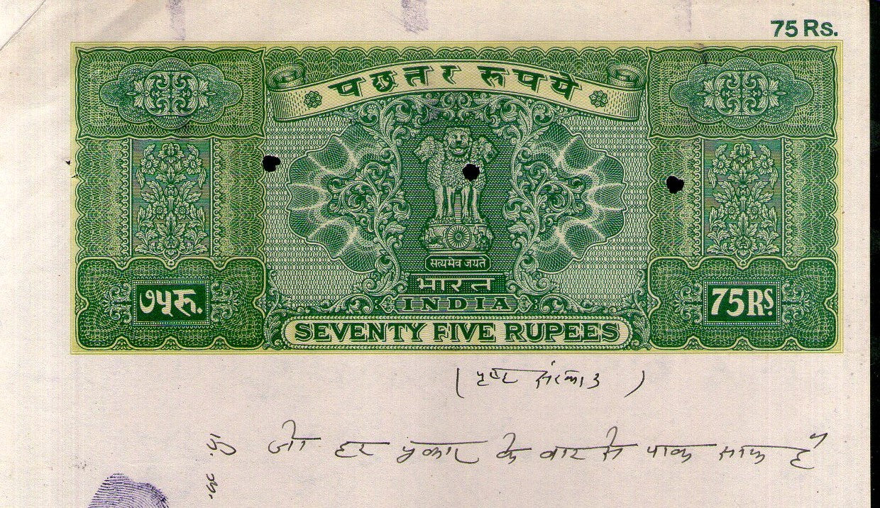 India Fiscal Rs 75 Ashokan Stamp Paper WMK-17 Good Used Revenue Court Fee # SP59